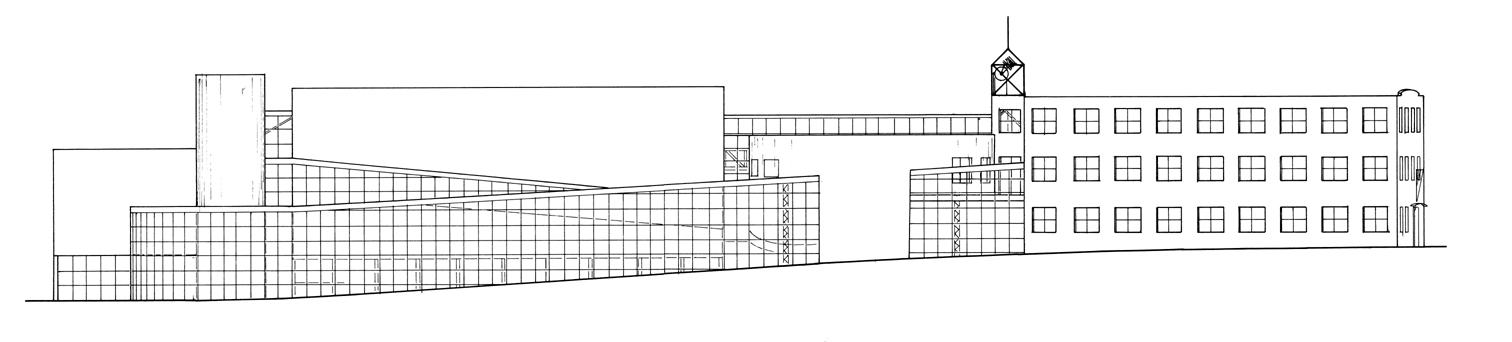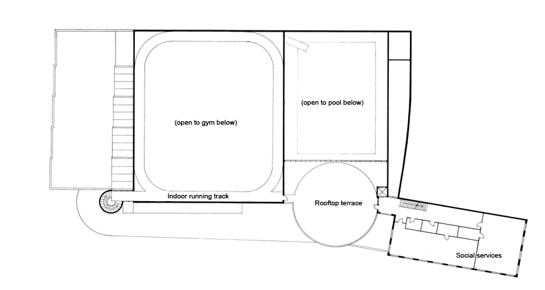 Although large empty sites were abundant in the Kitchener Waterloo area, especially in suburban areas, I purposely chose the most centrally situated site I could find, a partially empty city block with historic brick buildings bounded by Charles, Queen, and Ontario Streets. The idea was to ‘infill’ and complete this city block with urban density, and to provide a public architectural promenade through the building along ramps and galleries that offers views of sporting activities occurring throughout.