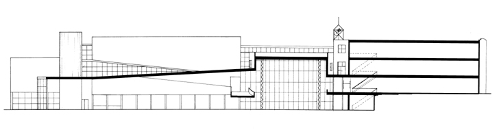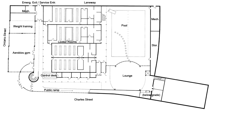 This is a studio project I completed in 1986 in my third year of architecture school at the University of Waterloo (instructors: Brian Hunt and Val Rynnimeri). The brief was to design a YMCA for a site of our own selection in the Kitchener-Waterloo area. We were given only four weeks. The program we were handed was that of the Metro Central Toronto YMCA; a recently completed building by Diamond Schmitt Architects.