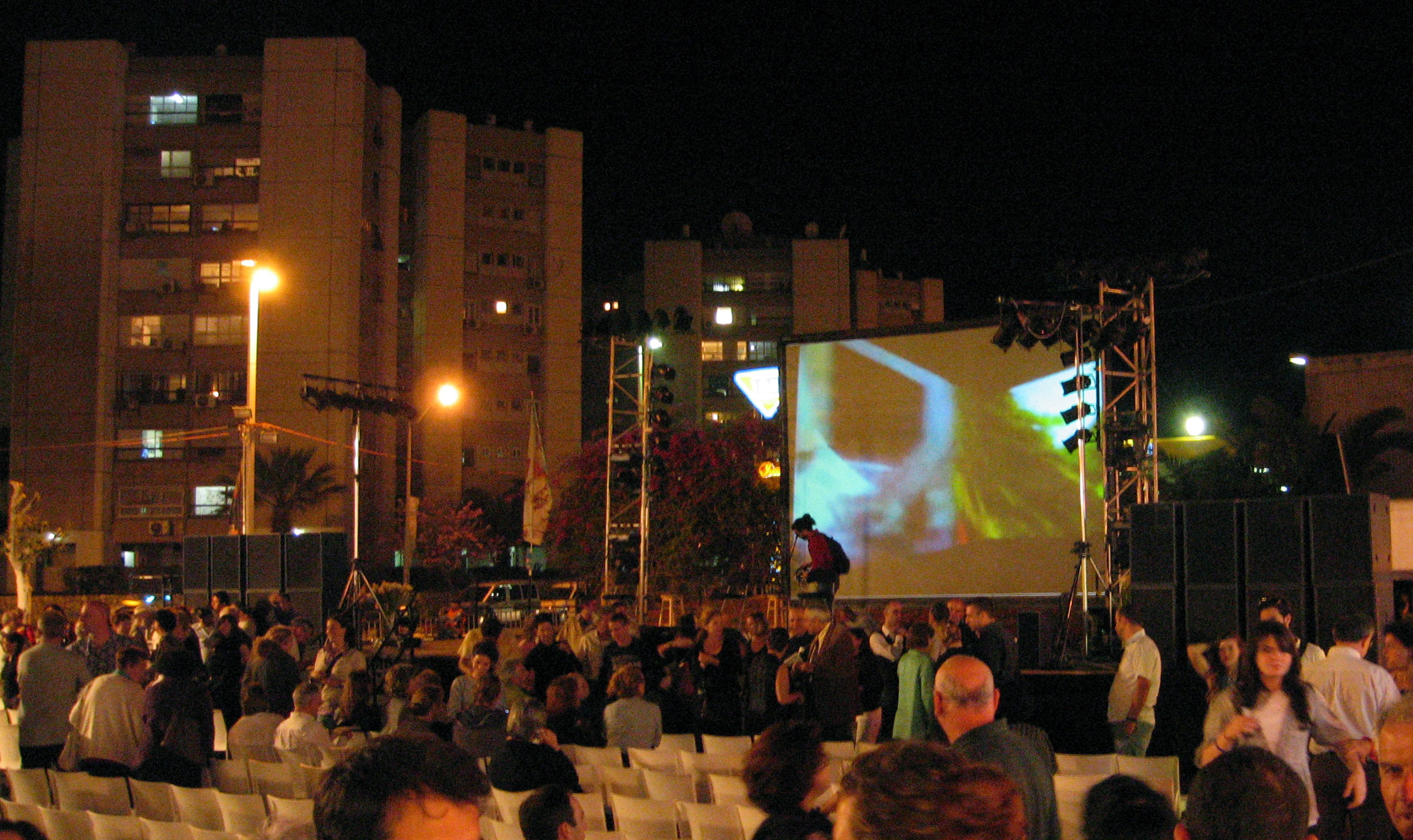 YouCity was a contribution to the 2008 Bat Yam International Biennale of Landscape Urbanism that temporarily converted an over-flow parking lot behind a shopping mall parking garage into an outdoor cinema screening videos on the theme of contemporary urban life that were solicited through an international public call for contributions via the YouTube group channel YouCity created specifically for this event.