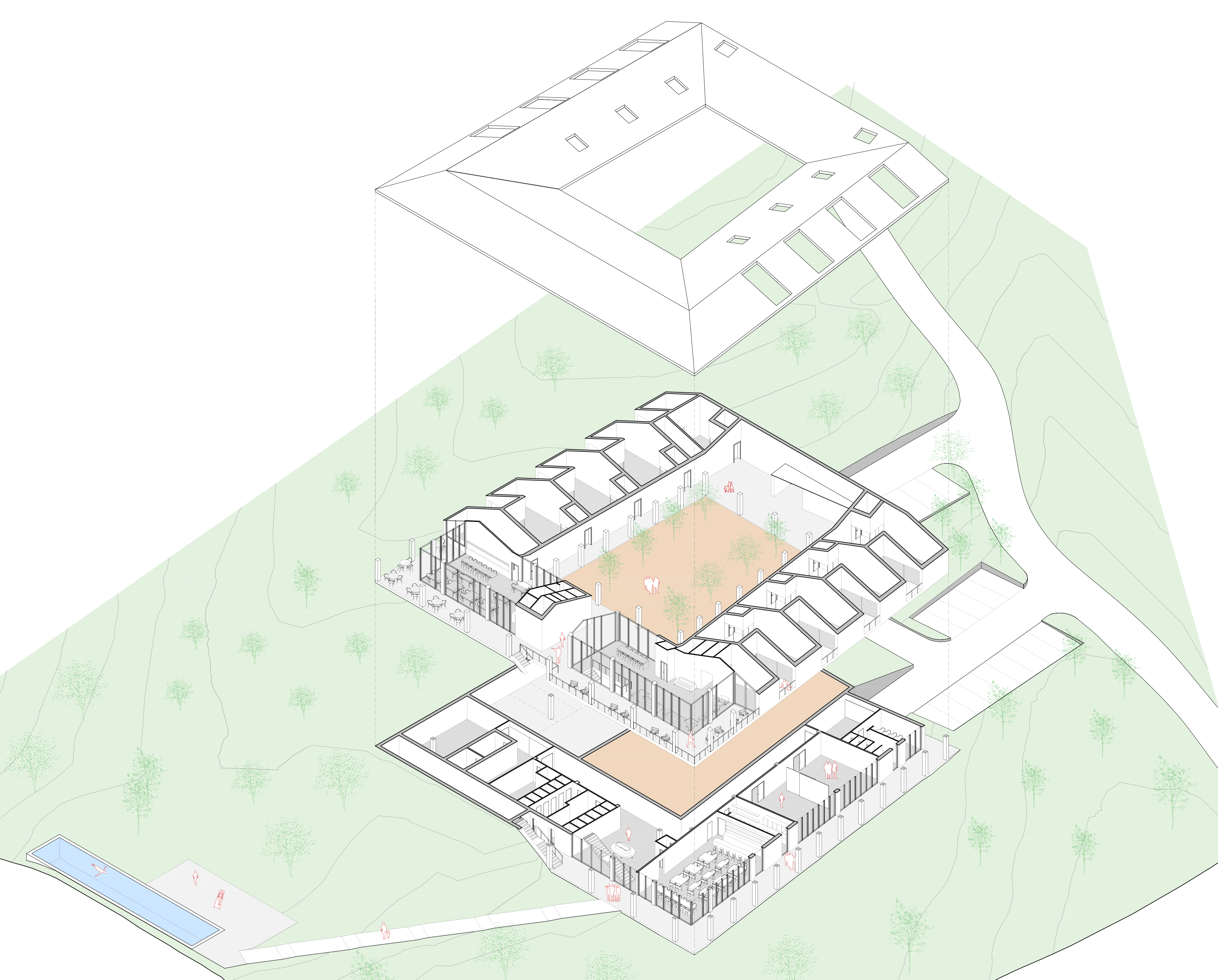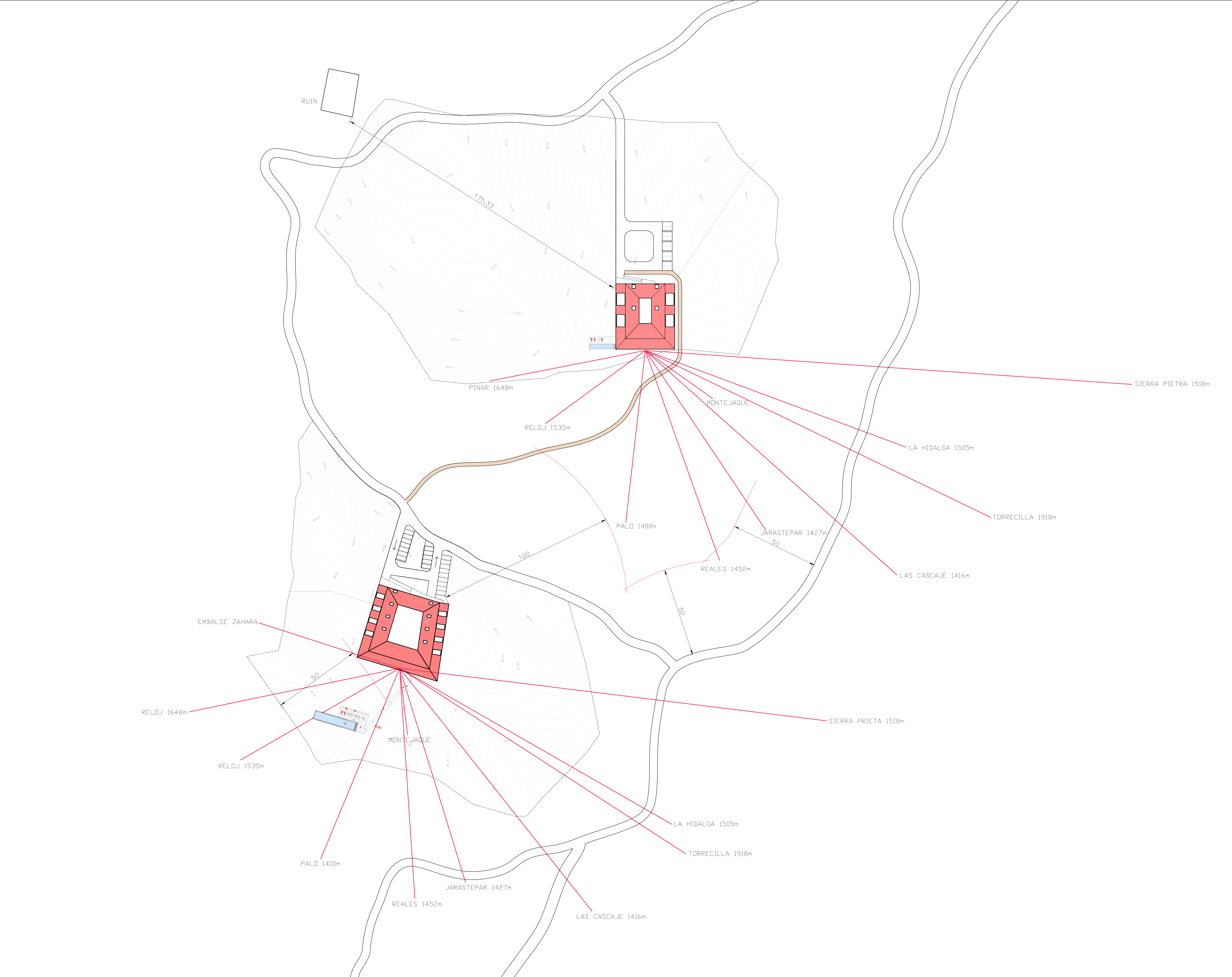 Situated at nearly 1000 m altitude in the mountains of Ronda, Andalusia (southern Spain), in a nature reserve containing Iberian archaeological remains, this proposal for a rural resort consists of a pair of ‘cortijo’ buildings, the modernity of which only becomes apparent up close. Seeking to minimize its visual and ecological footprint in deference to the stunning landscape, the project aims to be architecturally subtle and discreet.
